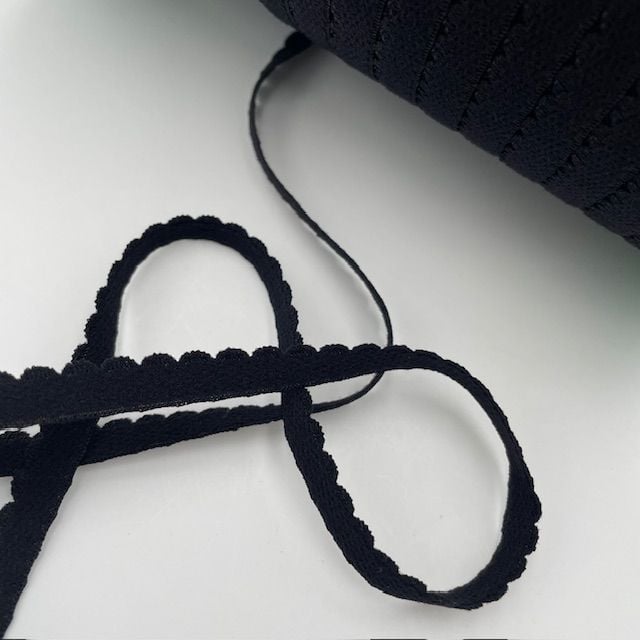 - Utilisez toujours le type d’élastique et la largeur préconisés par votre patron. Pour une taille de culotte, on utilise généralement un élastique décoratif de 7 à 10mm, ou un élastique à picots plus large (11/12 mm) pour les grandes tailles.