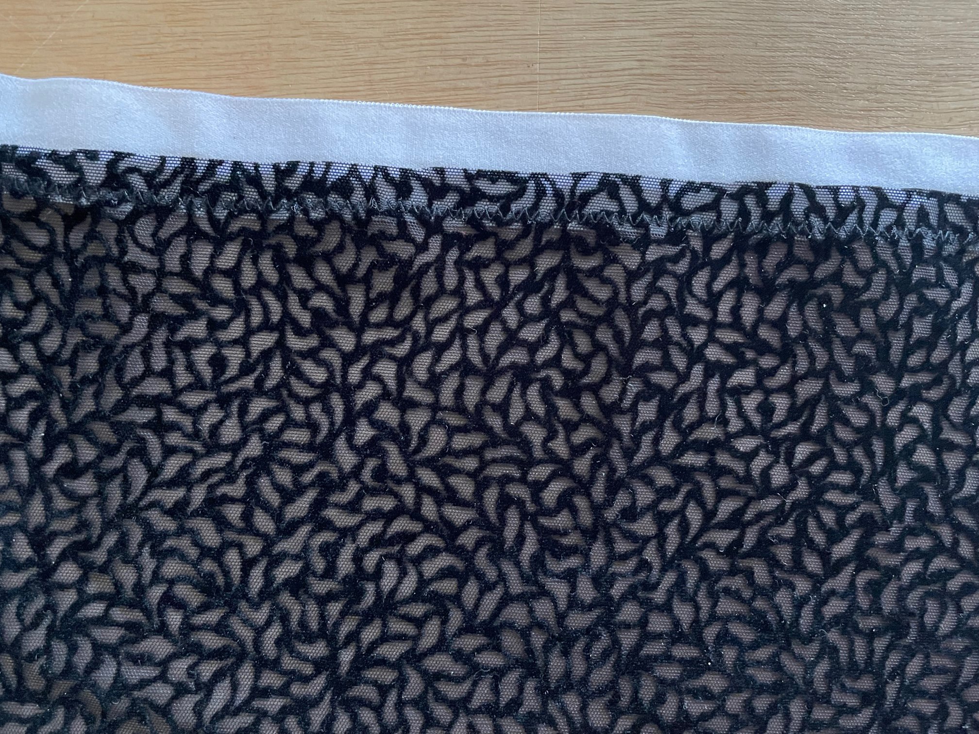- When sewing, it's important to 'stretch' the elastic to prevent your seams from yawning. Be careful not to put tension on the fabric underneath.