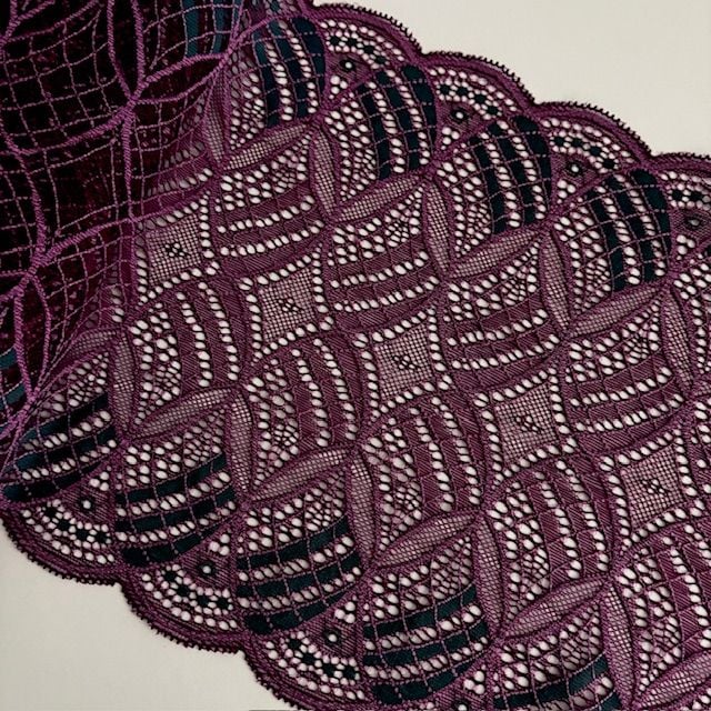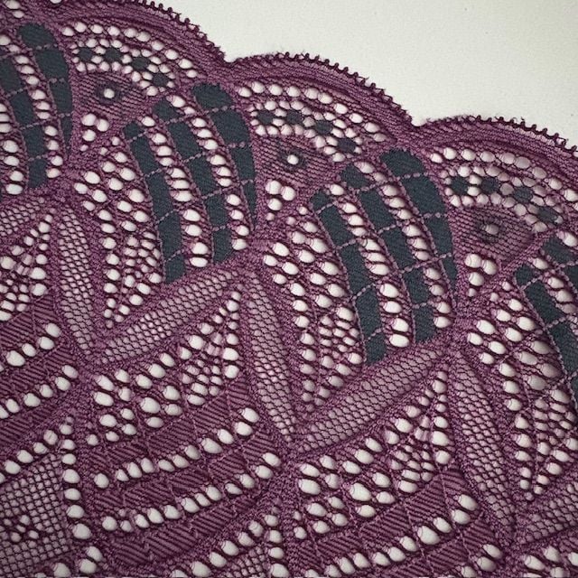 Elle offre une belle extensibilité dans le sens de la longueur, idéale pour des finitions élégantes et confortables : brassières, culottes, empiècements de body ou bordures raffinées.