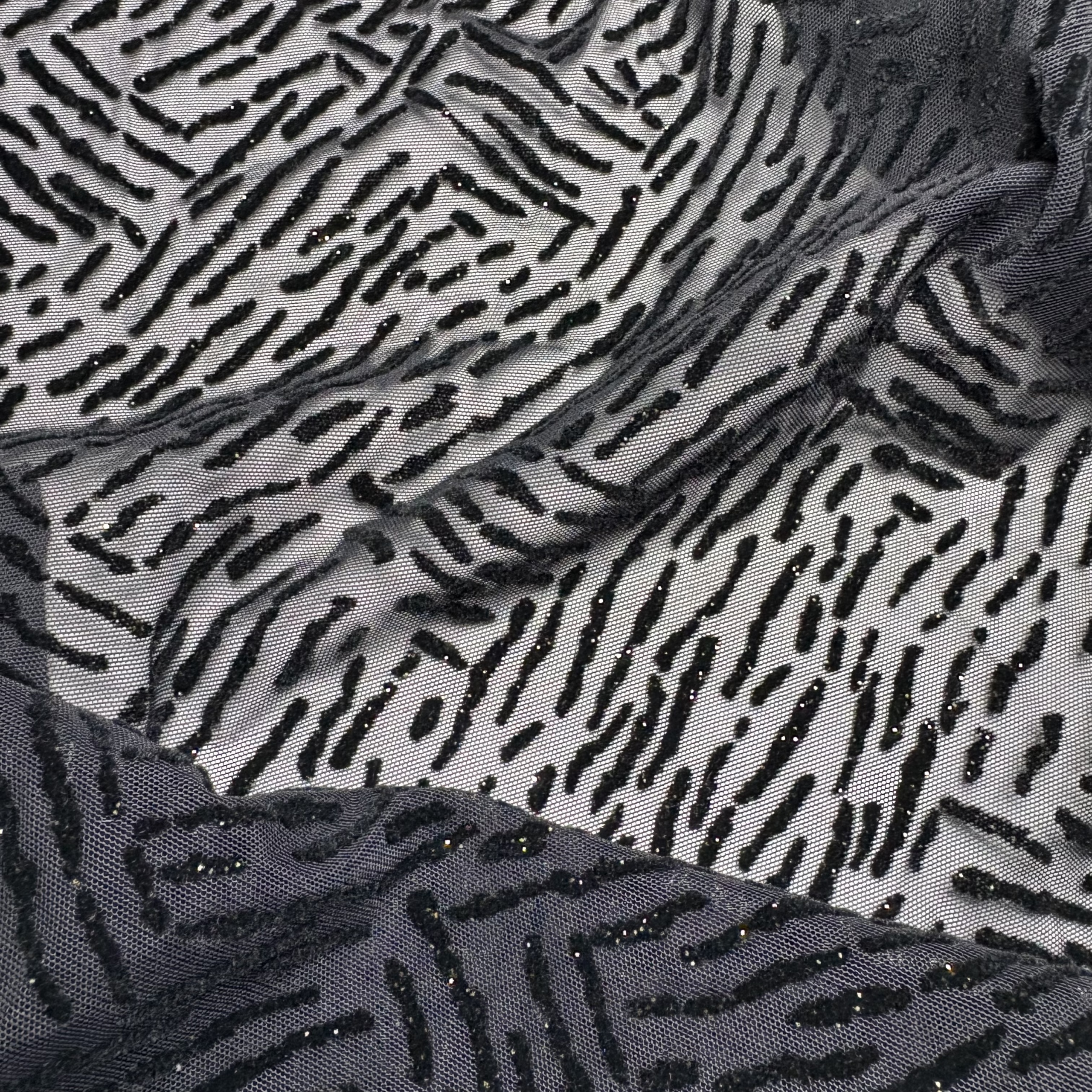 Idéale pour la confection de pièces de lingerie, bodies, tops ou vêtements près du corps (ou pas), cette maille d’exception allie confort, originalité et élégance. Son motif floqué apporte du relief et de la profondeur, tout en conservant une grande finesse, parfaite pour des créations haut de gamme.