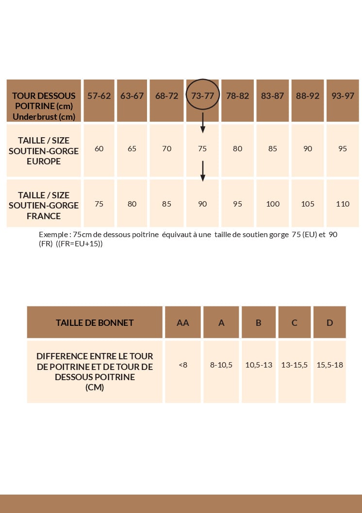 Vendu pour les tailles d’armatures 75 à 110 – Tailles françaises